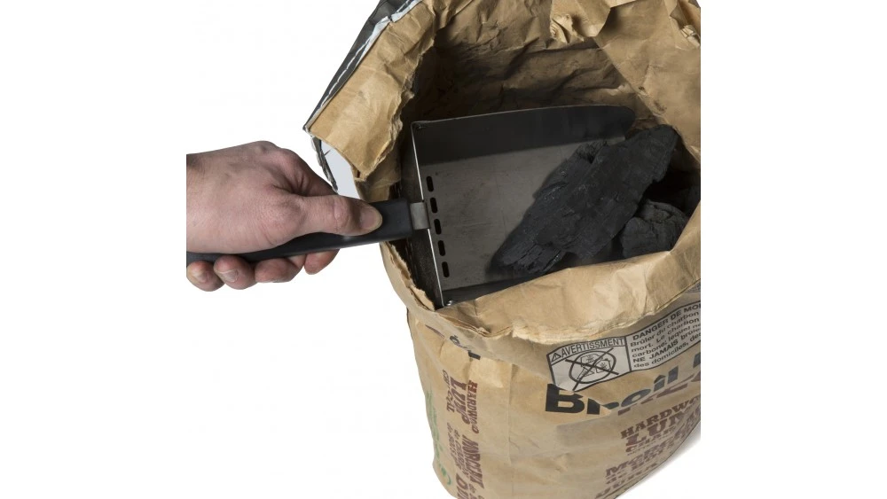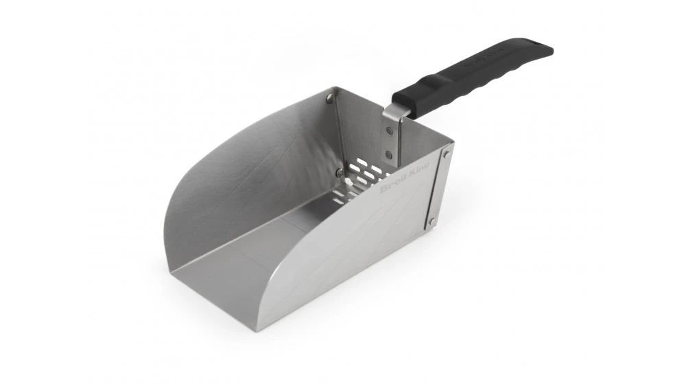 This handy scoop makes it even easier to fill up your grill with pellets or charcoal. It has an intergrated sifter to get rid of that unwanted dust. The scoop is made of stainless steel and has a resin handle.