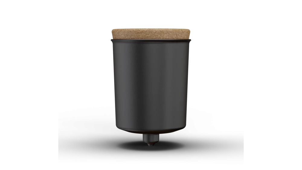A black anodised aluminium funnel with a cork top, engineered with precision to inject just the right amount of water into the oven and create steam on entry.